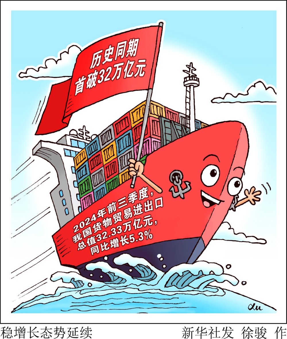 海关总署10月14日发布数据显示,2024年前三季度,我国货物贸易进出口总值32.33万亿元,历史同期首破32万亿元,同比增长5.3%。
