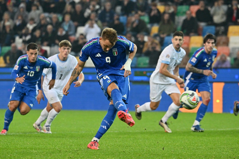 10月14日,意大利队球员雷特吉射门得分。