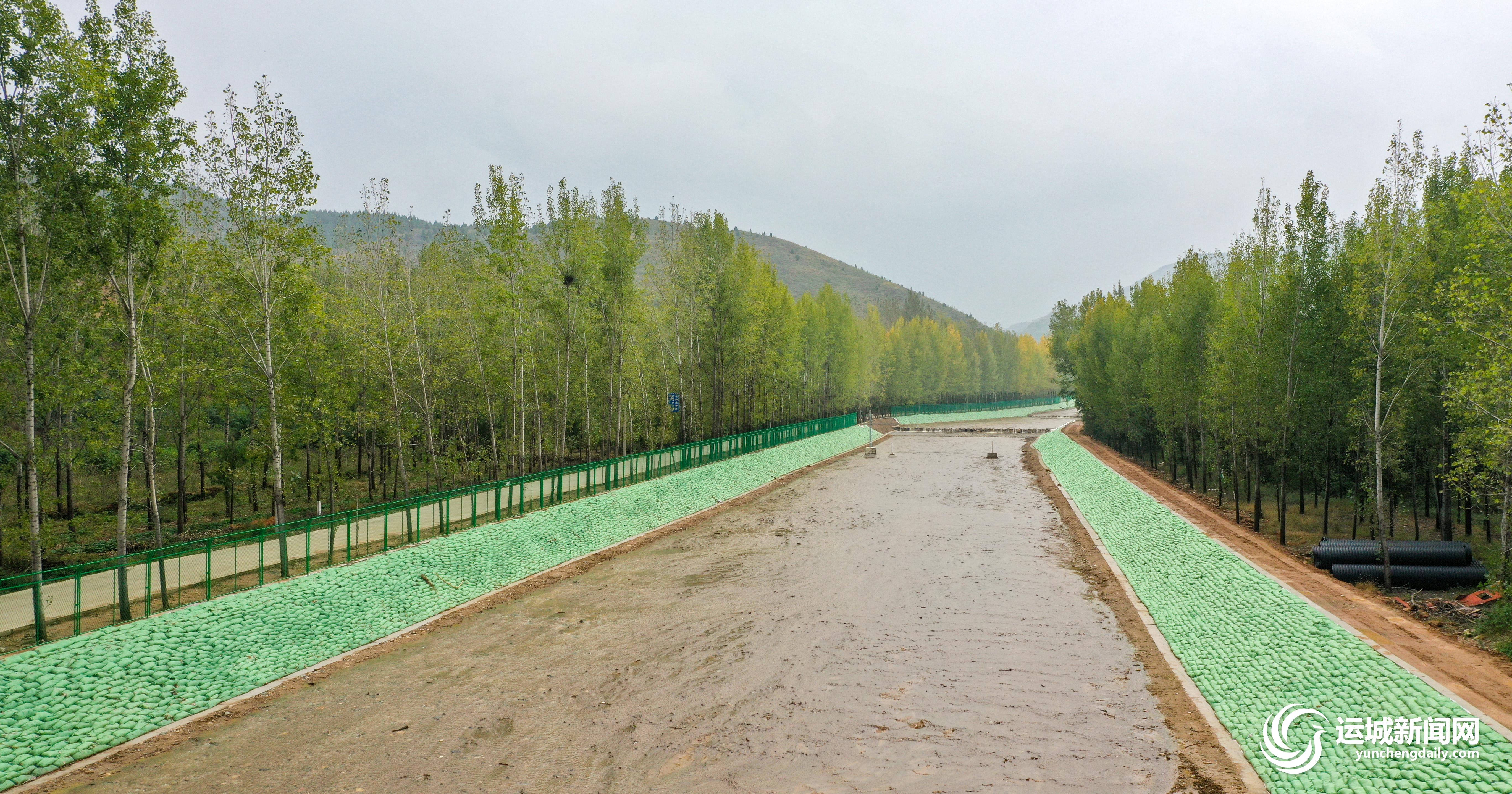 10月18日,在夏县白沙河水源地保护与治理修复项目现场,河道里缓缓流淌的山泉水、岸边生态护坡带、防护栏网与周边的凉亭、吊桥以及沿河岸边的防护林带,共同构成一幅水源地绿色生态图画。