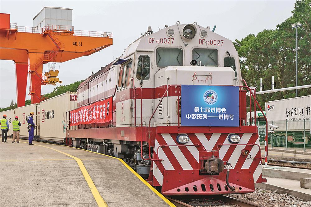 10月20日,首趟“中欧班列——进博号”抵达上海铁路物流中心闵行货场中储专用线。