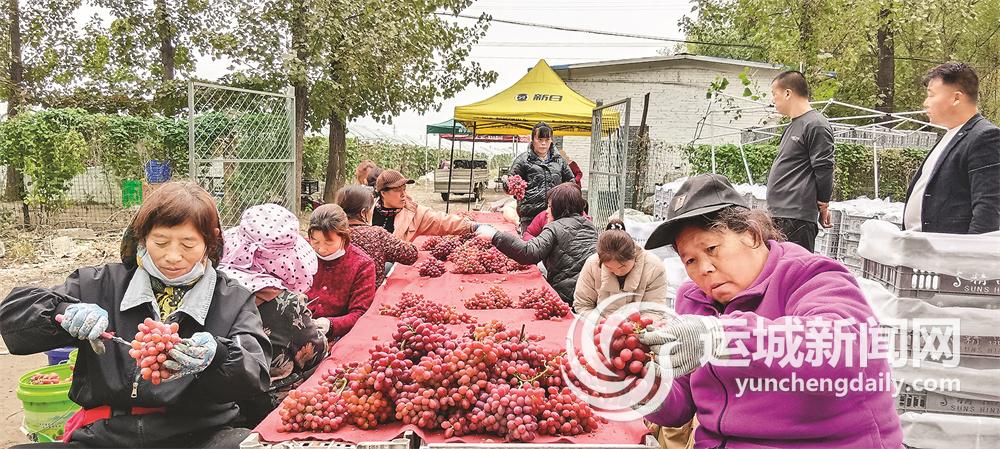 10月21日,夏县禹王镇禹王村村民正在采摘克伦生葡萄,整理装箱,准备外销。