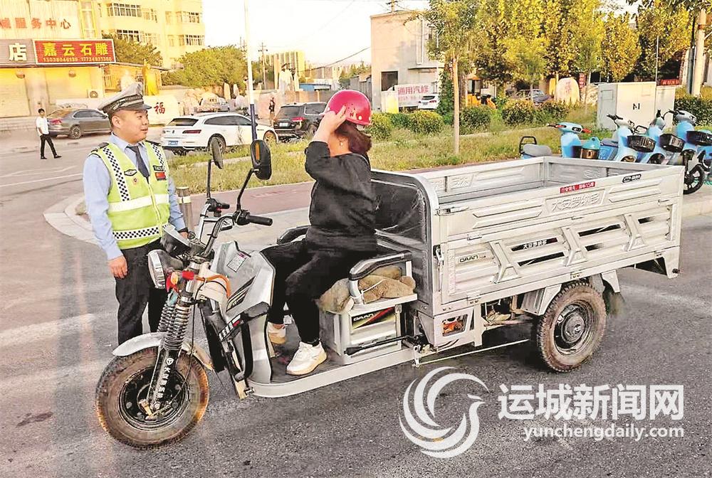 运城晚报讯(记者 刘凯华)为有效预防和减少三轮车引发的道路交通事故,全力维护和保障广大人民群众生命财产安全,连日来,运城市公安局盐湖分局交警大队结合辖区道路交通特点及“一盔一带”安全守护行动,大力开展三轮车交通违法行为整治劝导行动。民警采取定点查处和流动巡查相结合的方式,重点查处三轮车违法载人、不戴头盔、逆行等交通违法行为,做到发现一起、纠正一起、教育一起、处罚一起,共同营造文明和谐畅通的交通环境。