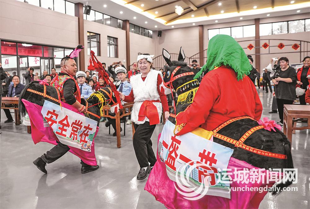 活动在欢快的威风锣鼓中拉开序幕。小品《错哪了》以运城味儿十足的诙谐表达和引人深思的剧情,对不戴安全头盔、无保险上路、违法载人等常见交通违法行为进行讽刺揭露,引发村民热烈讨论。同时,现场还上演了一场具有地方特色的赶毛驴民俗表演,其中融入了丰富的交通安全元素,不仅展现了当地的文化魅力,更让村民们在欣赏表演中感受到交通安全的重要性。演员们接地气的表演方式,使得现场群众纷纷叫好。