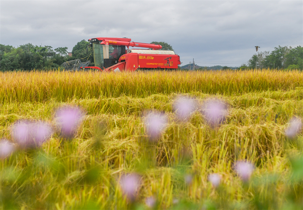 10月20日,在湖南省永州市道县梅花镇棠下村,农民驾驶农机收割晚稻。