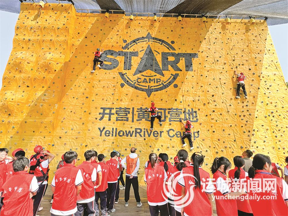 秋日的圣天湖,落霞与孤鹜齐飞,秋水共长天一色。学生们走进圣天湖黄河营地,领略黄河之美,挑战自我、磨砺意志。他们热情高涨,跃跃欲试,积极参与攀岩、丛林穿越、攀爬网、GAGA球、极限飞盘、旱地冰壶、黄河陶艺等项目的挑战,在运动中勇于探险,体验快乐,享受成长。