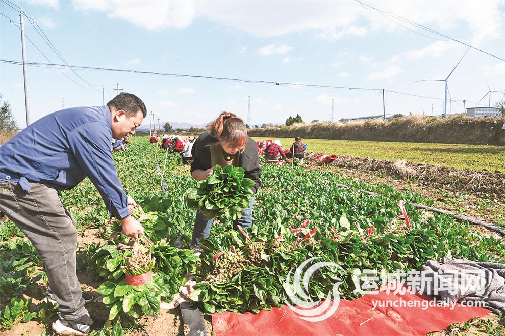 闻喜县河底镇合阳村村民在收割菠菜