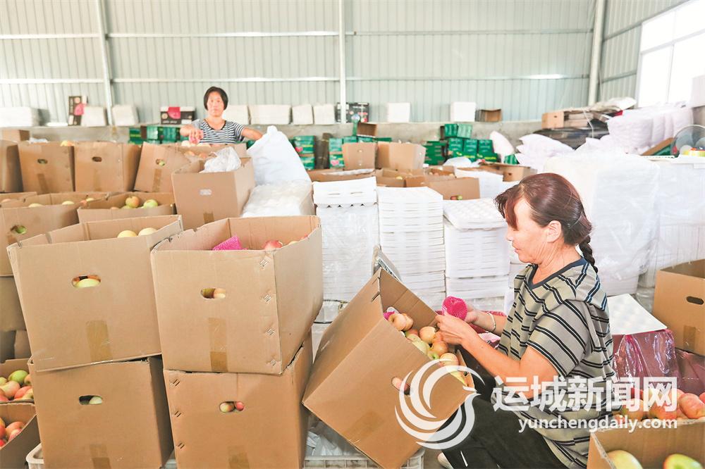 走进跃飞公司生产车间,一派热火朝天的气息扑面而来。在这个占地2000多平方米的宽敞车间里,从撕苹果膜袋,到清洗、分选、套网袋、贴标签,再到有序地装箱转运,工人们有条不紊地忙活着。