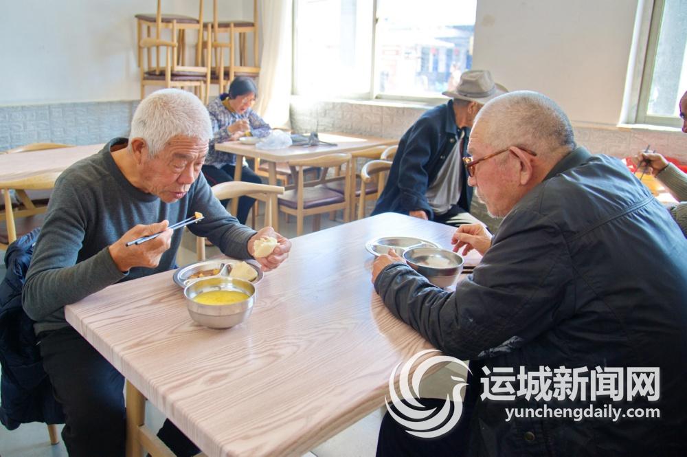 10月23日12时,盐湖区大渠街道大渠村七旬老人曲文芳与老伴拜全胜,来到该村日间照料中心爱心餐厅就餐。