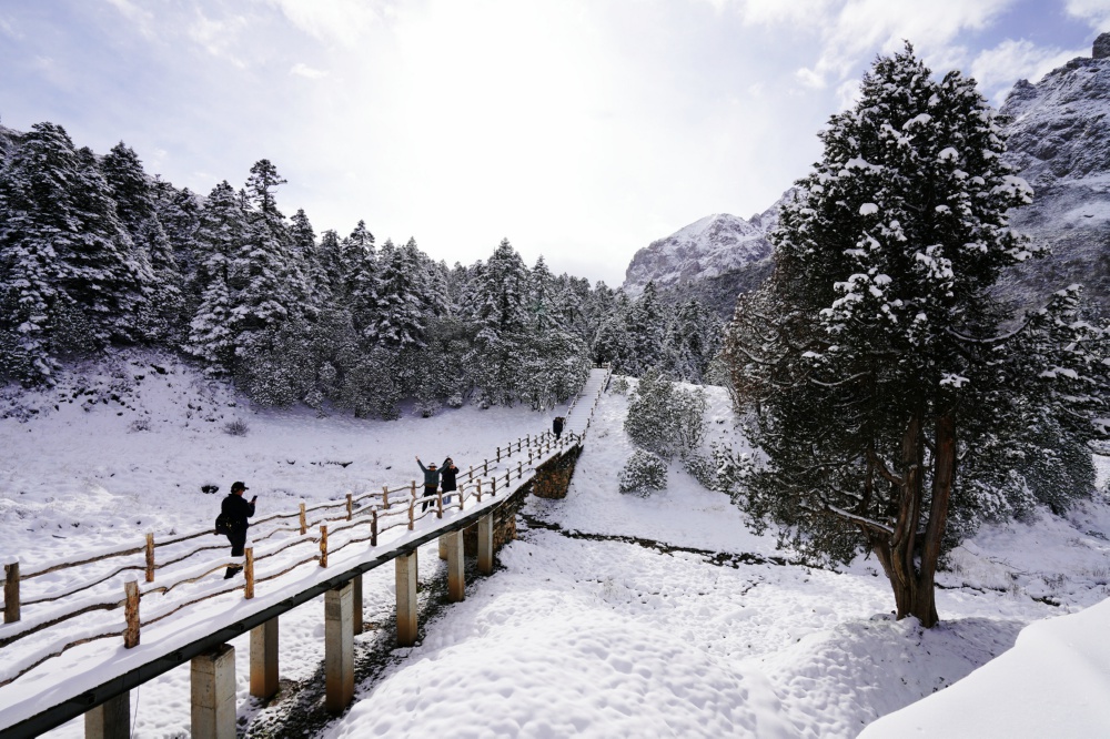 这是10月27日拍摄的官鹅沟森林公园雪景。近日,位于甘肃省陇南市宕昌县的官鹅沟森林公园迎来降雪。在皑皑白雪的映衬下,峰谷如梦如幻,美不胜收。新华社发
