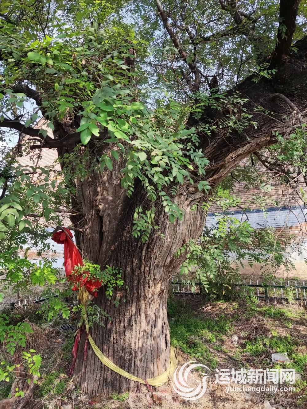 上述庭前古槐,现仍茂盛地生长在累德村村西门口大巷南,树高超10米,主干高5米,胸径超1.3米,冠幅超13米,已被收入《山西古稀树木》一书。