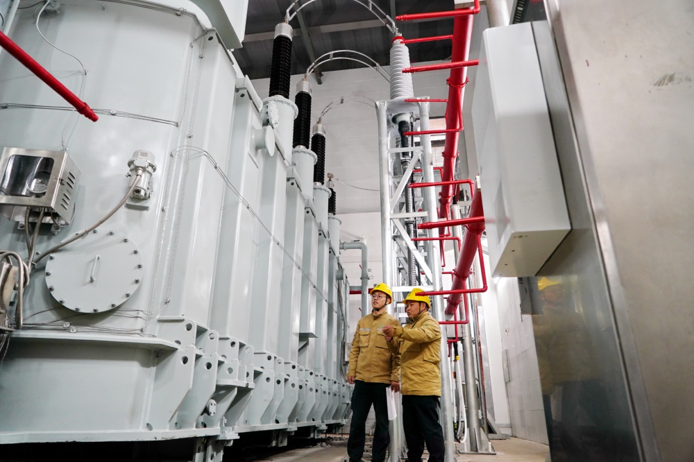 10月29日,国网雄安新区供电公司运维检修中心工作人员在王阳变电站主变室内巡检。