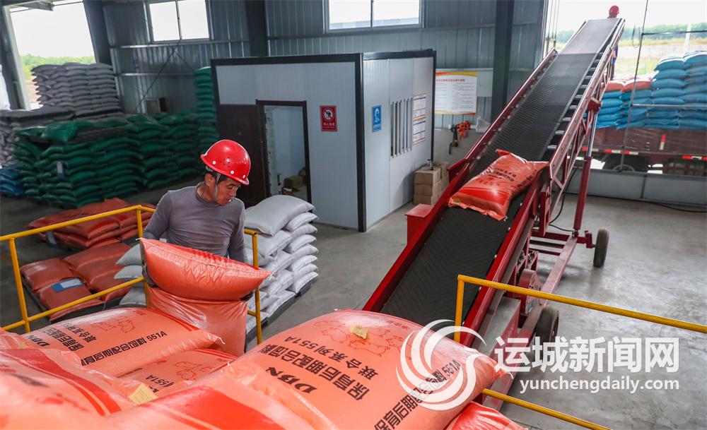 10月21日,运城大北农生物科技有限公司生产车间内,工人们在转运加工好的饲料。