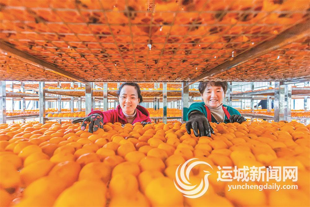 10月30日,万荣县汉薛镇柿柿红柿饼加工厂员工在晾晒柿饼。
