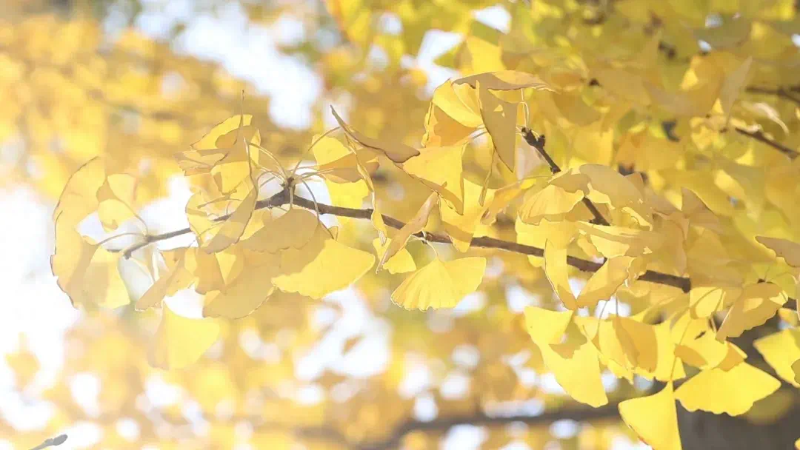 随着季节的更替,秋意渐浓,万物皆呈凋零之态,唯独银杏叶则是耀人的金黄色,金灿灿的银杏叶挂满枝头,微风拂过“小扇子”轻轻摇曳,抬头是满目金黄,俯首亦是遍地灿烂,深深浅浅的扇叶点缀了这一方天地。