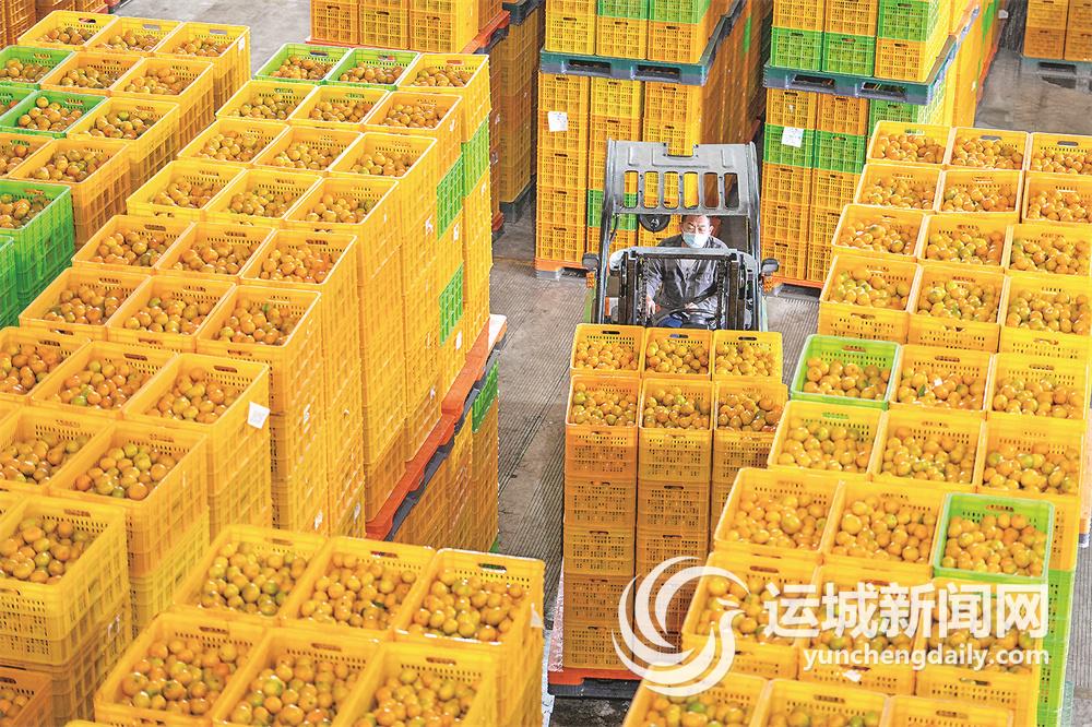 11月1日,在石门县一柑橘加工厂,工人在运输柑橘。