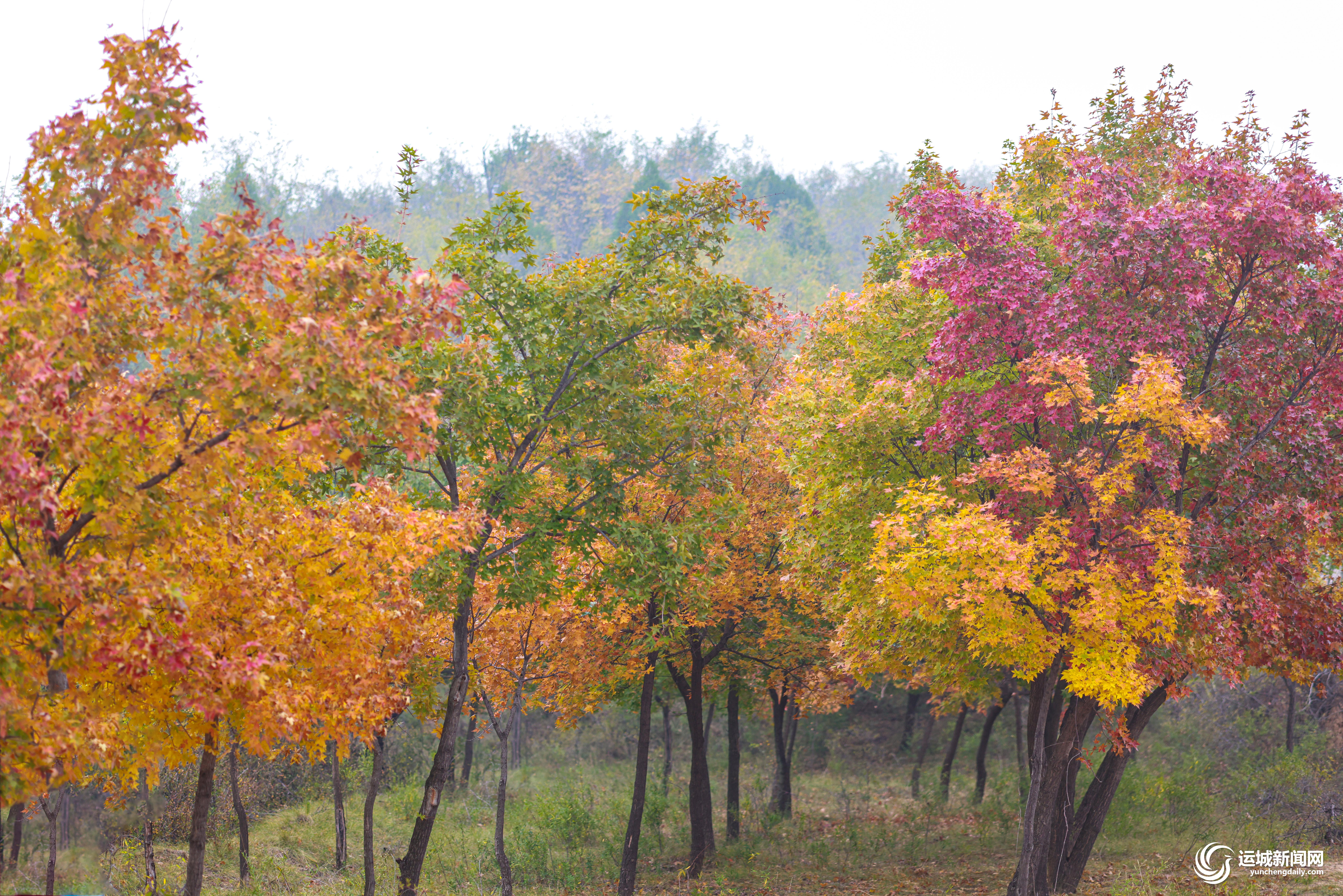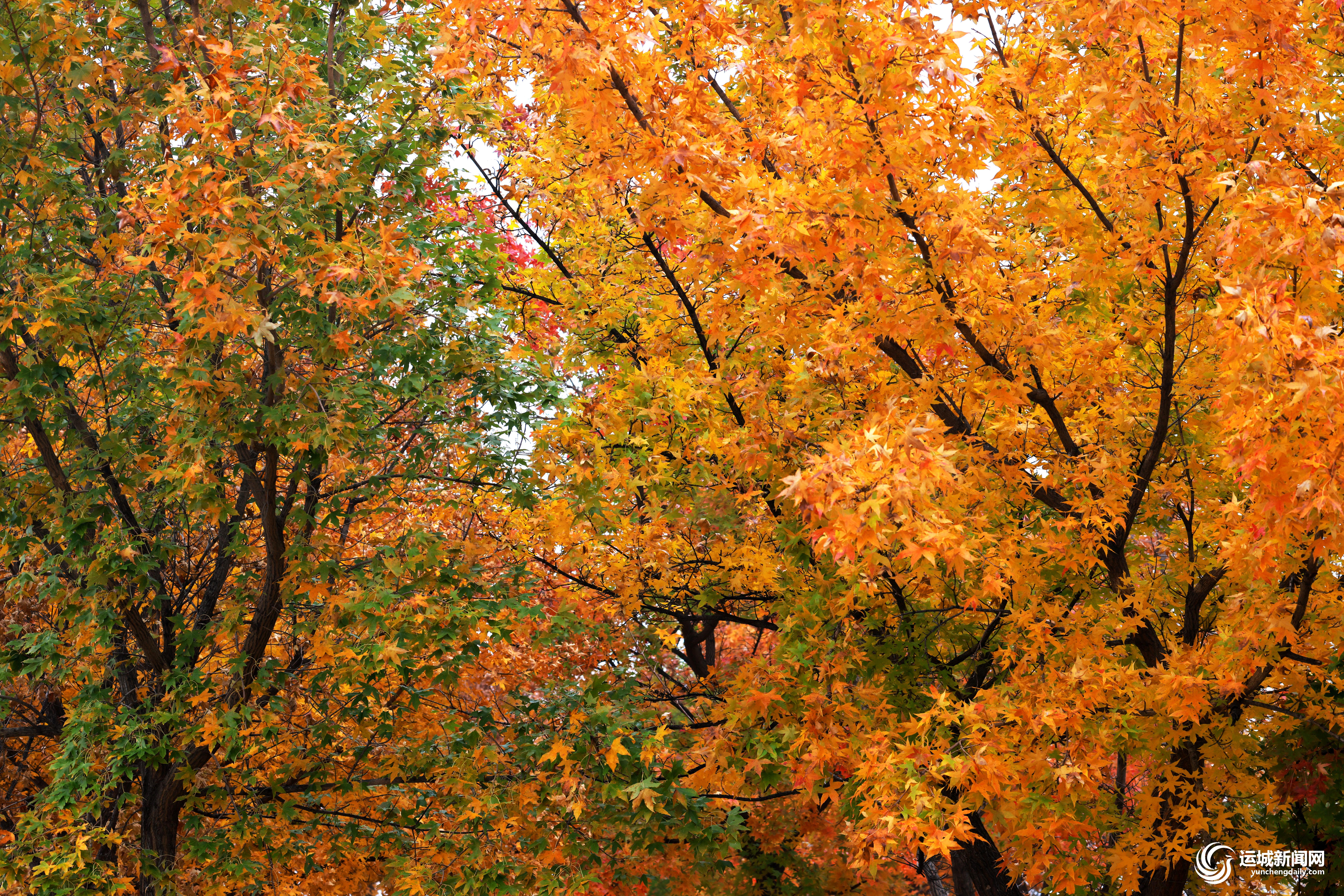 霜降过后,位于平陆县圣人涧镇庙洼一带的枫叶绽放出惊人的美艳,呈现出五彩斑斓的绚丽色彩,格外迷人(摄于11月1日)。