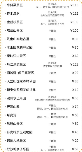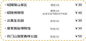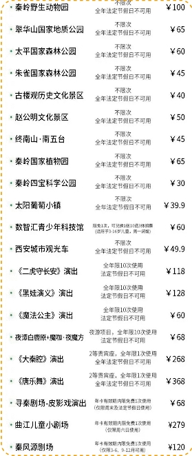 “秦晋之好”旅游惠民年卡可享受的免票权益如下图。