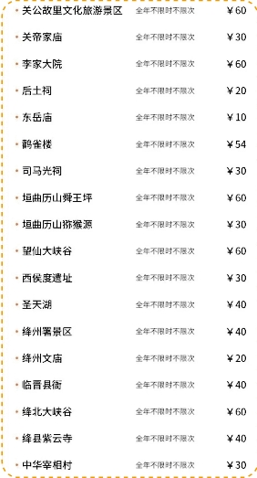 据了解,对于之前办理的运城旅游年票,是不可以加价升级为“秦晋之好”旅游惠民年卡的,因为这两个参与的景区不同。