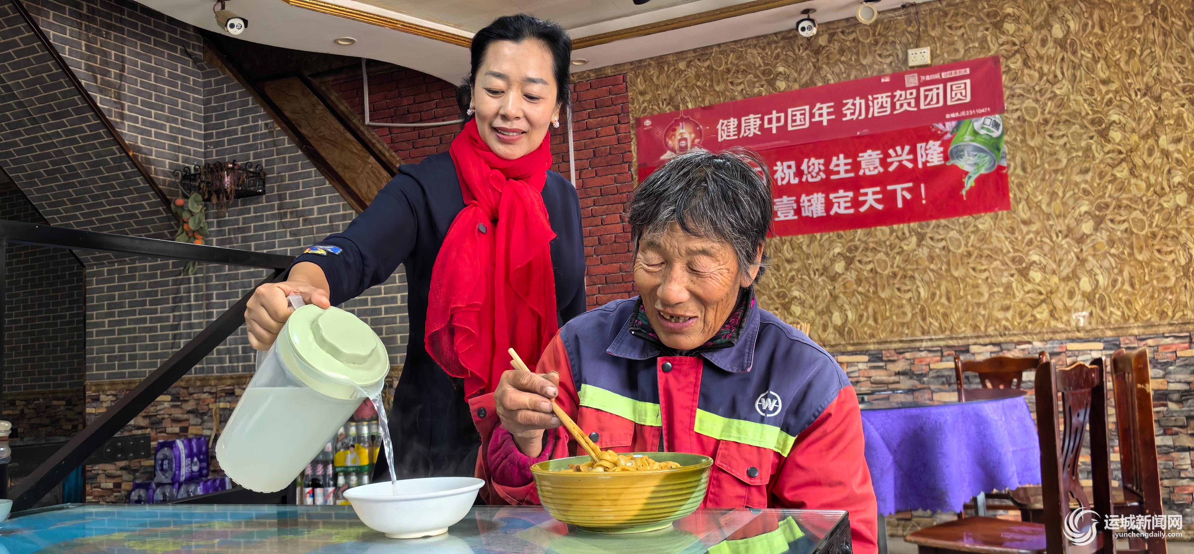 上面说的霞姐,就是从平陆大山里走出来的黄玲霞。2004年,黄玲霞从平陆把油泼面的手艺引入运城,历经20年,先后在中心城区红旗东街、解放路、人民路、圣惠路等处开过饭店,如今迁至运城市中心汽车站南侧。她说20年来,自己感触最深的就是看到不少弱势群体或特困人群,用餐结账时因为口袋钱不够而陷入窘境,深深触动了她的心。于是两年前她就决定,凡是没钱吃不起饭的人,来她饭店吃面一律免费。