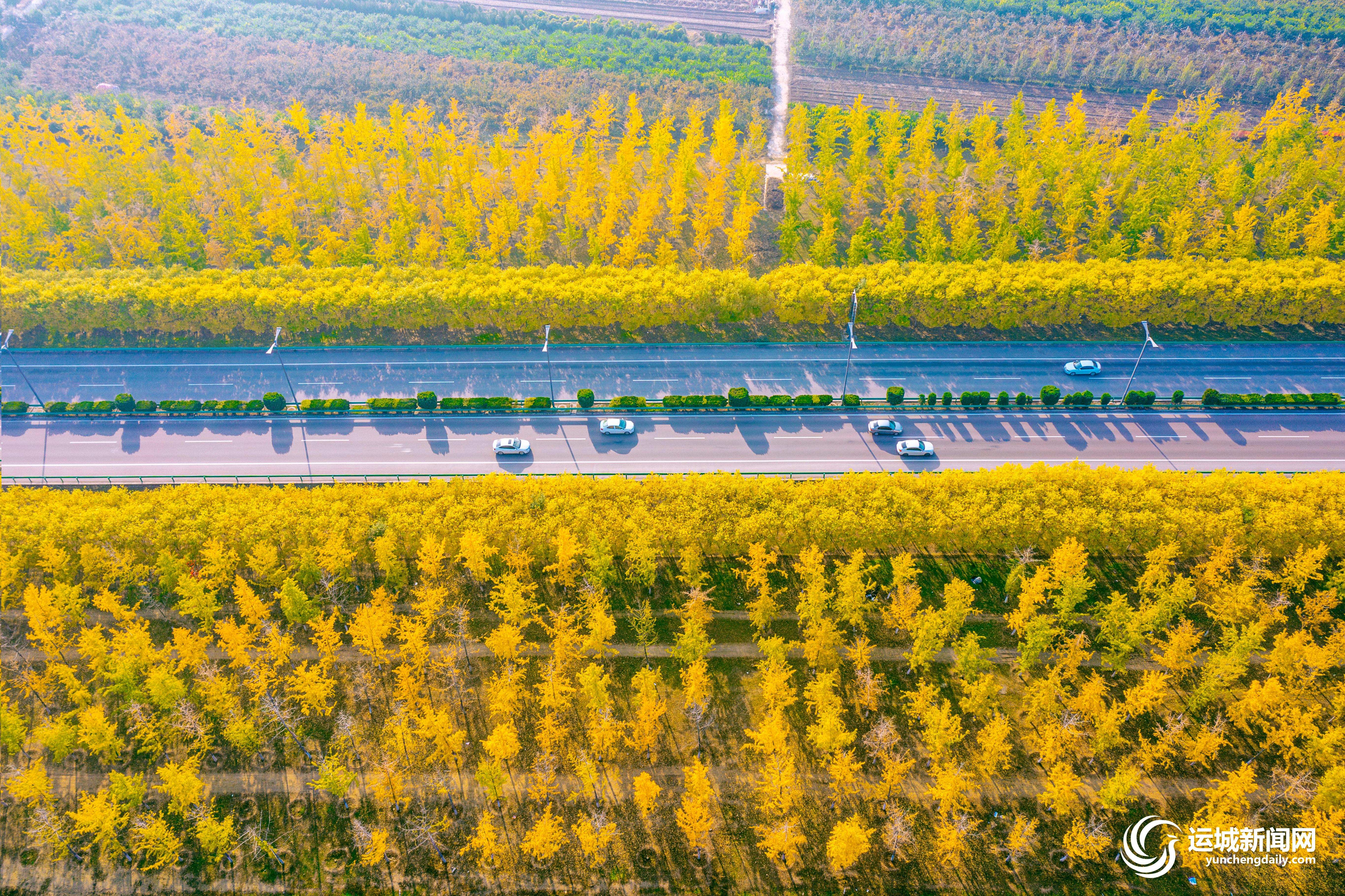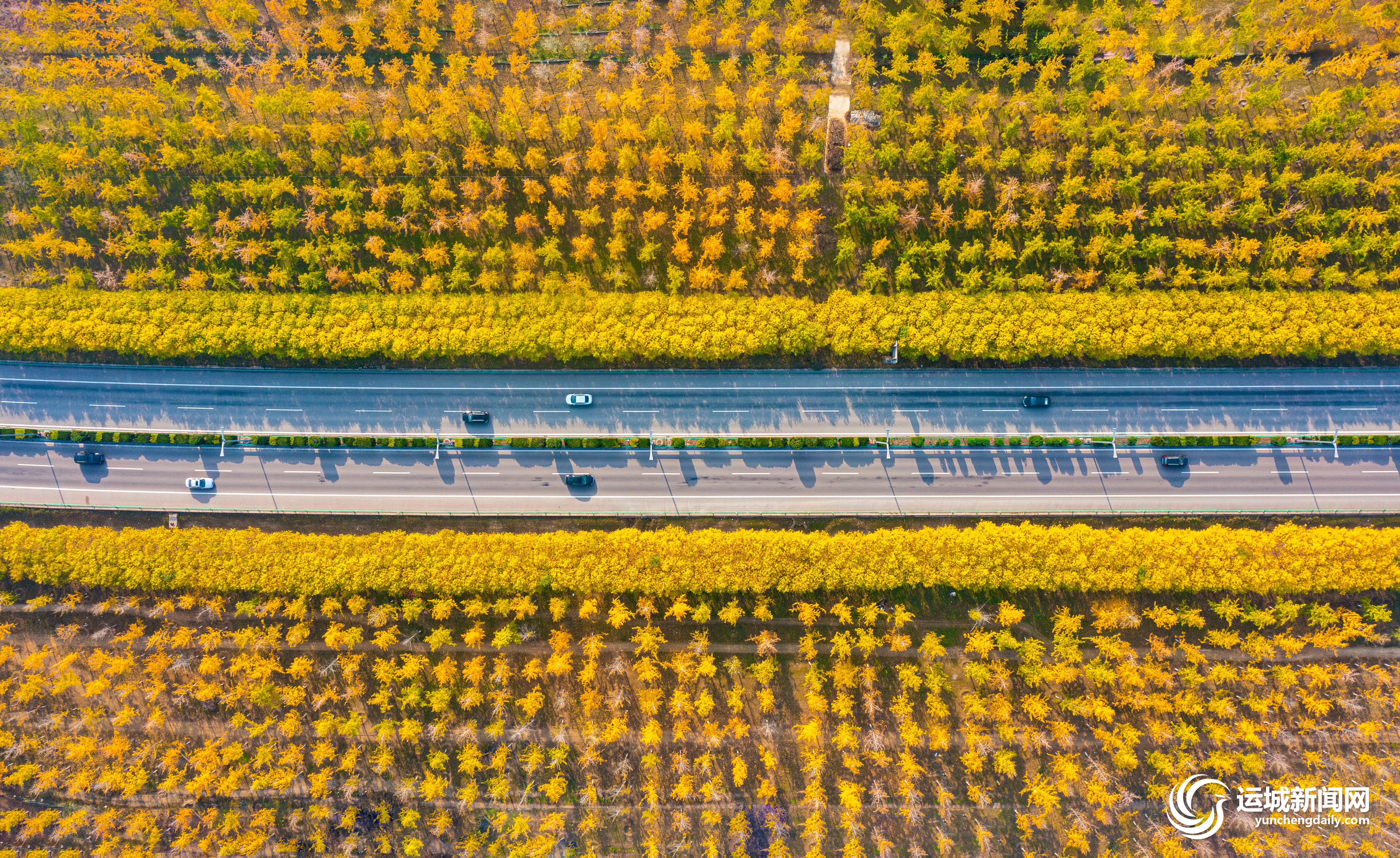 11月6日,中心城区机场大道运风高速连接线两侧层林尽染,道路宛若一条玉带穿梭在彩林间,组成一幅“车在景中行 人在画中游”的唯美画卷。