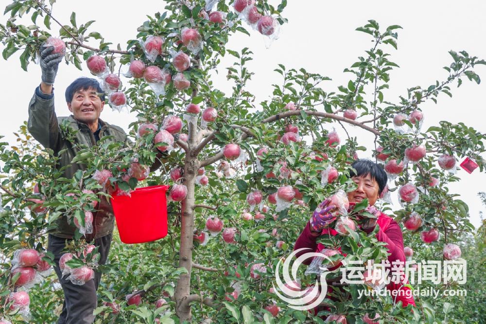 11月4日,万荣县南张乡尚家村果农忙着收获红富士苹果。