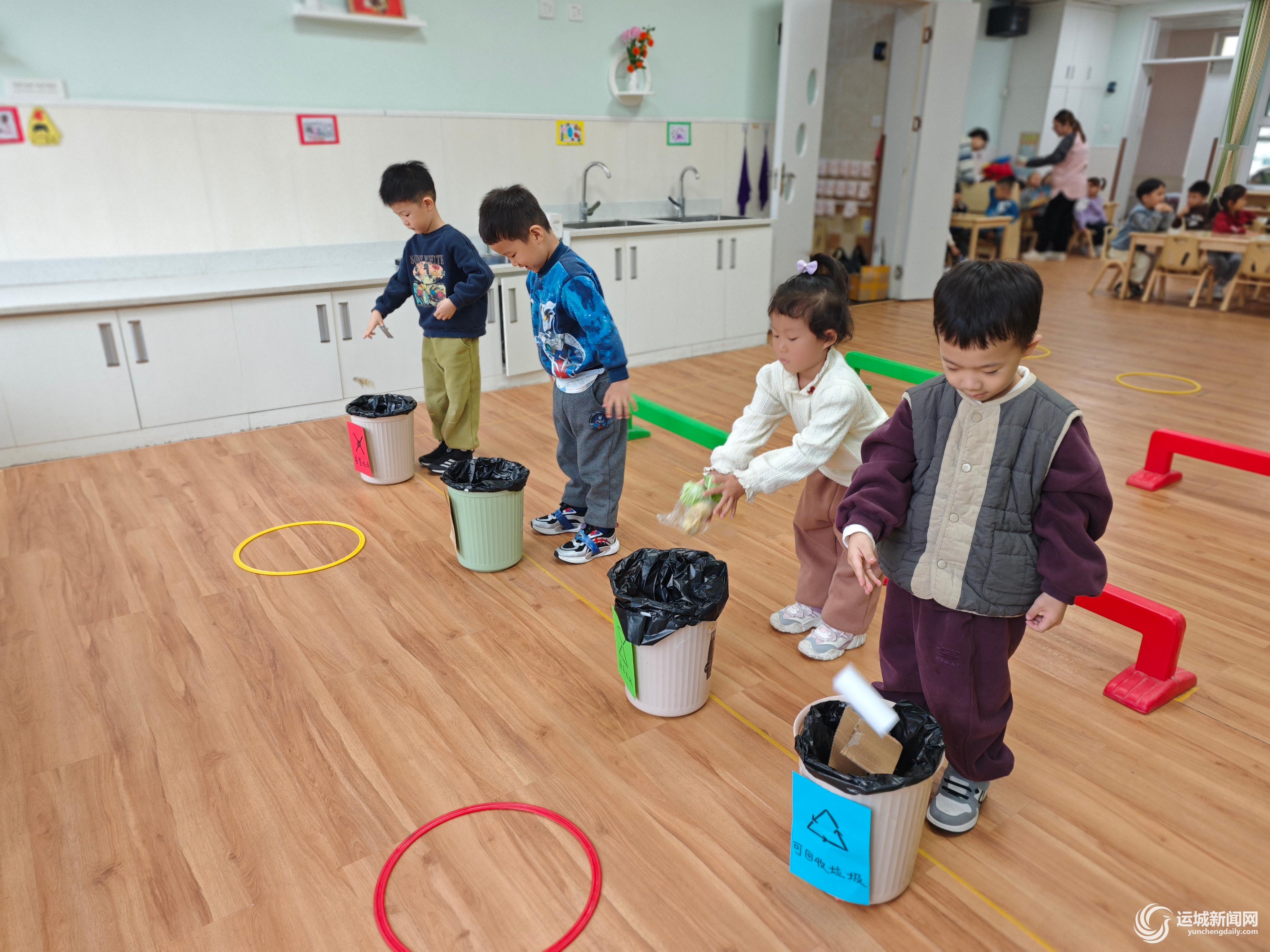在垃圾分类比赛游戏环节,孩子们在老师的引导下,设计出游戏规则:分组从起点出发,越过障碍物,将“垃圾”放入对应的筐中,再返回起点,最终筐中投放正确的“垃圾”数量最多的队伍获胜。“游戏环节就是支持和满足幼儿通过直接感知、实际操作及亲身体验获取经验,有很好的效果。”该园教师介绍。