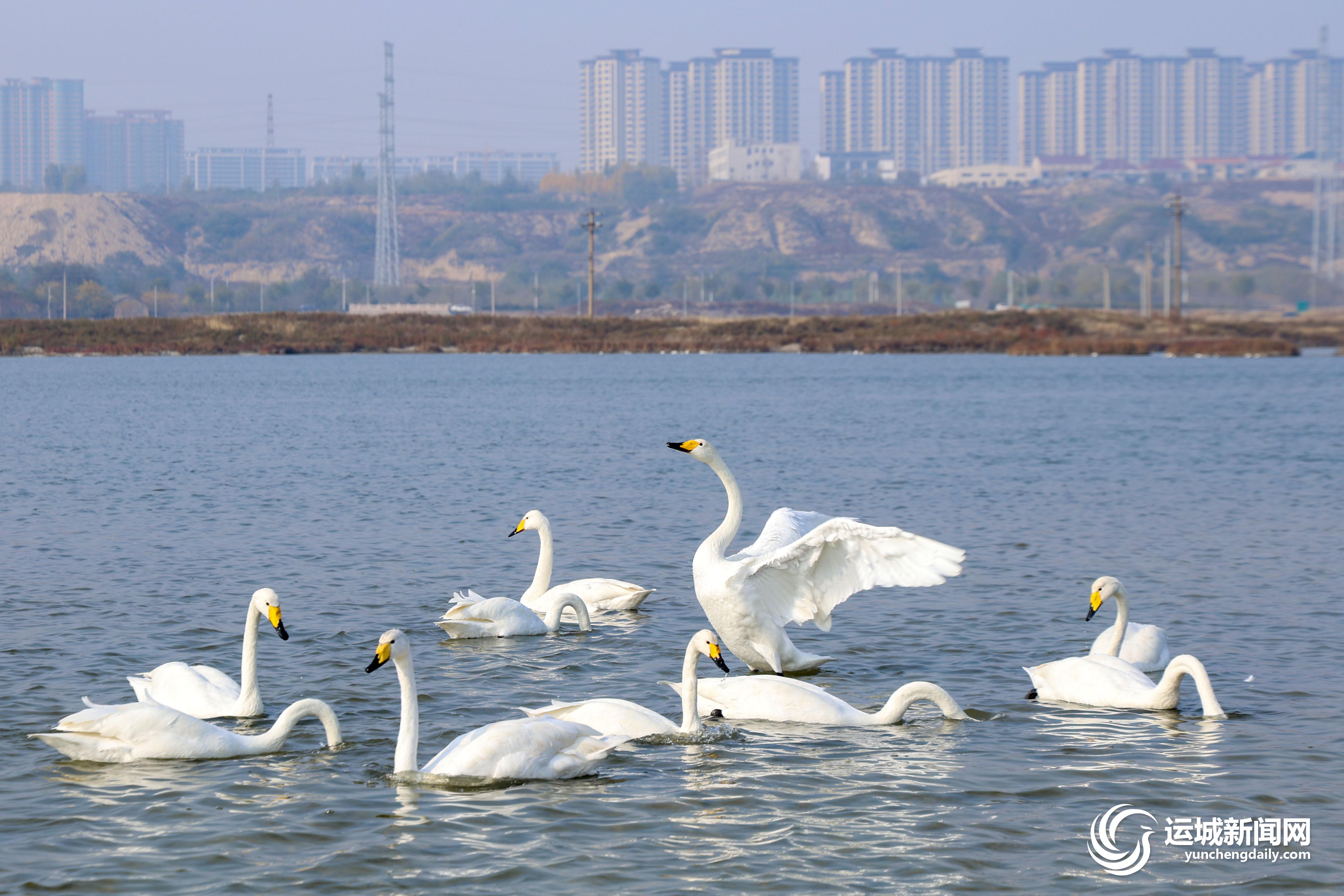 随着气温下降,运城盐湖迎来一批越冬野生大天鹅。它们时而嬉戏、时而觅食,姿态优雅。近年来,盐湖生态环境不断改善,吸引天鹅、白鹭、灰鹤等鸟类来此栖息。