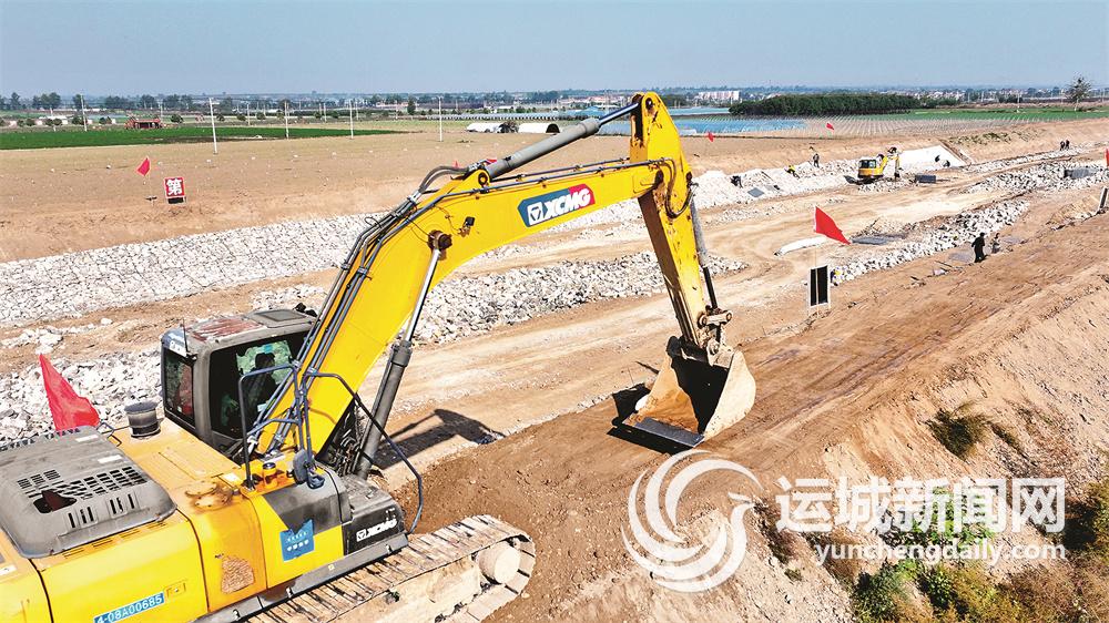 11月6日,在青龙河夏县段防洪能力提升工程工地上,工人们正在紧张地施工。