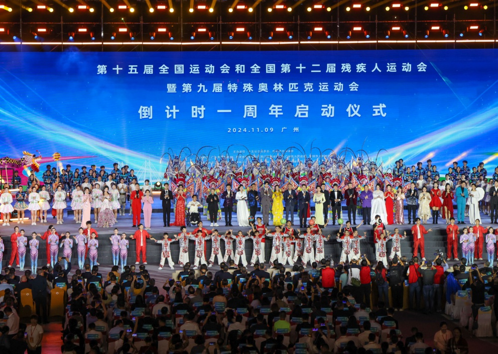 当日,“相约湾区 共迎全运”第十五届全国运动会和全国第十二届残疾人运动会暨第九届特殊奥林匹克运动会倒计时一周年启动仪式在广州市海心沙亚运公园举行,仪式上正式发布十五运会主题口号、会徽、吉祥物。 新华社记者 刘大伟 摄