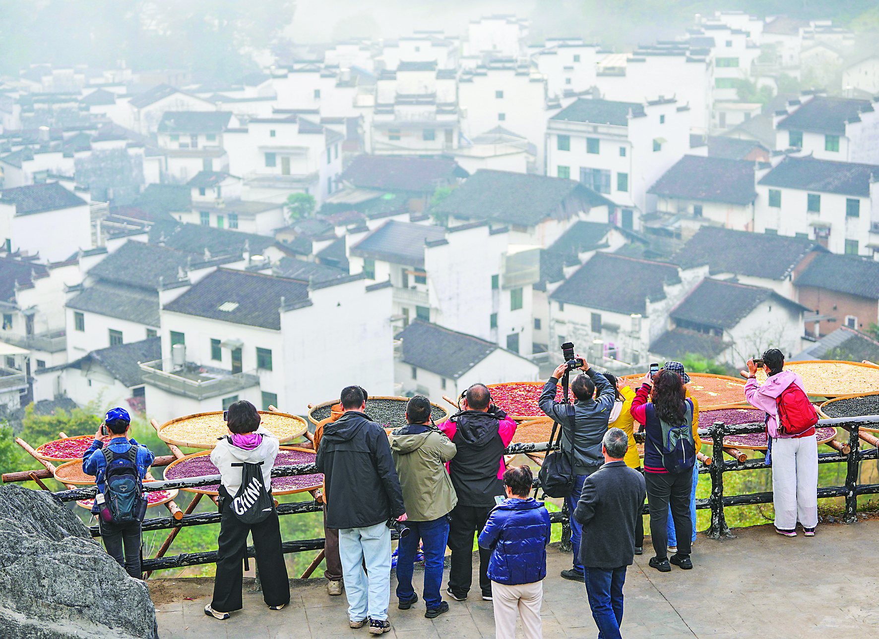 11月10日清晨,摄影爱好者在婺源石城景区拍摄徽派民居。