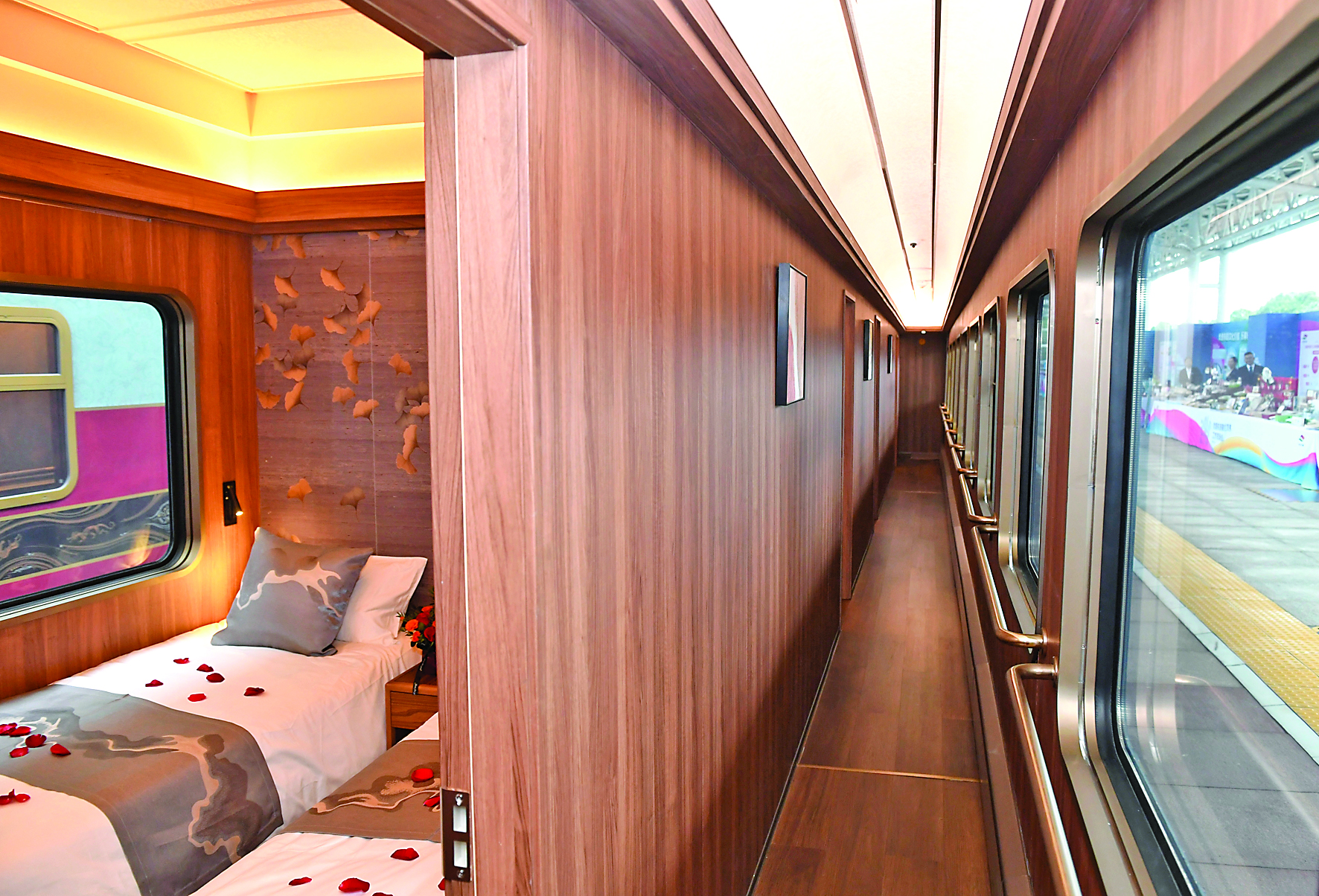 这是“熊猫专列·成都号”上的包厢与走廊(11月10日摄)。