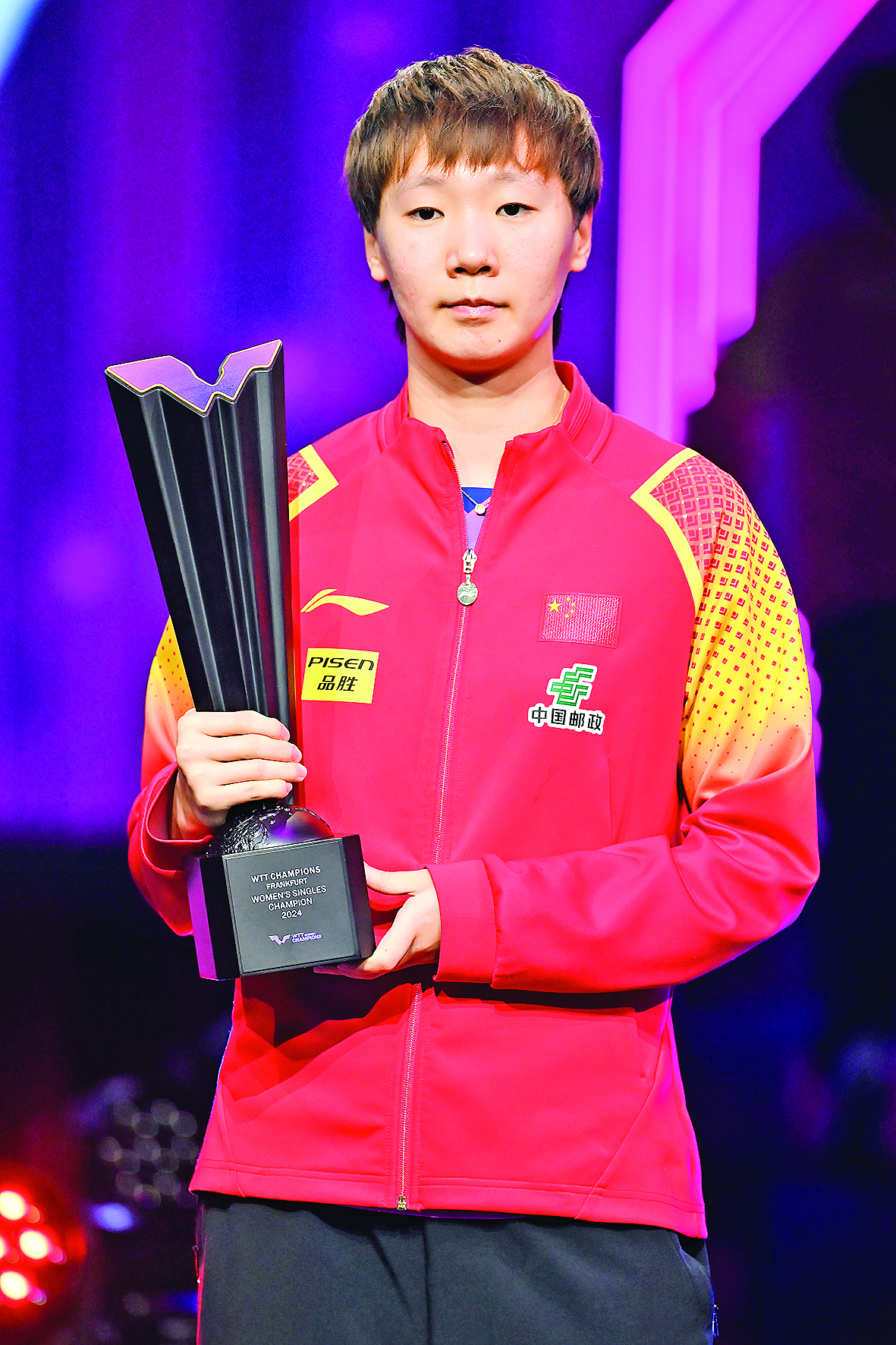 当日,在德国法兰克福举行的2024世界乒乓球职业大联盟(WTT)法兰克福冠军赛女子单打决赛中,中国选手王曼昱4比2战胜队友王艺迪,夺得冠军。