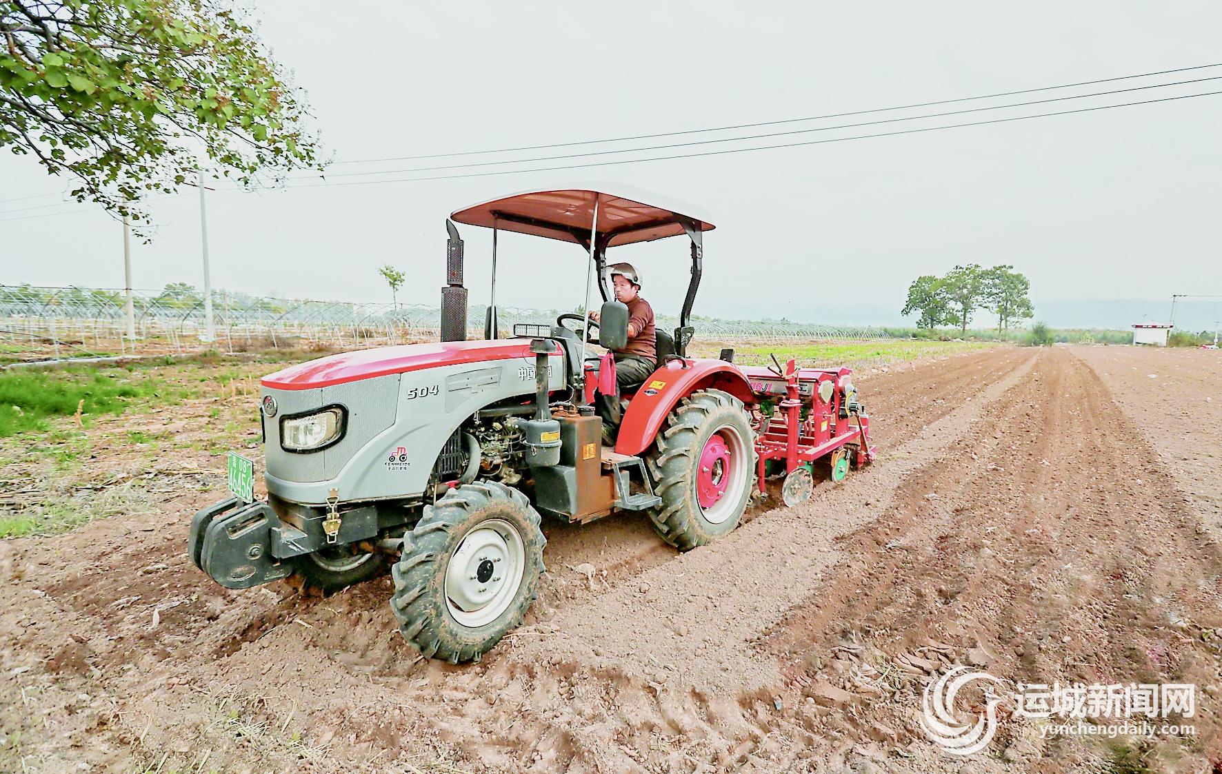 11月10日,夏县尉郭乡苗村村民紧抓晚播时机,使用大型机械播种冬小麦。