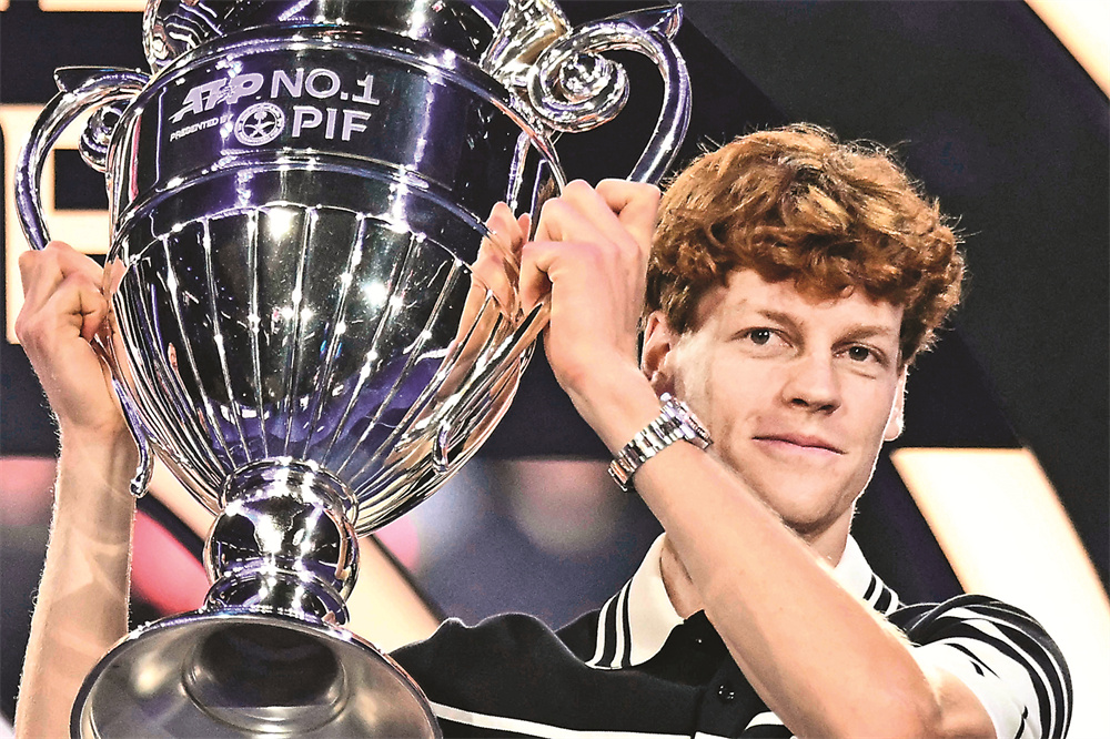 11月11日,辛纳举起奖杯庆祝。