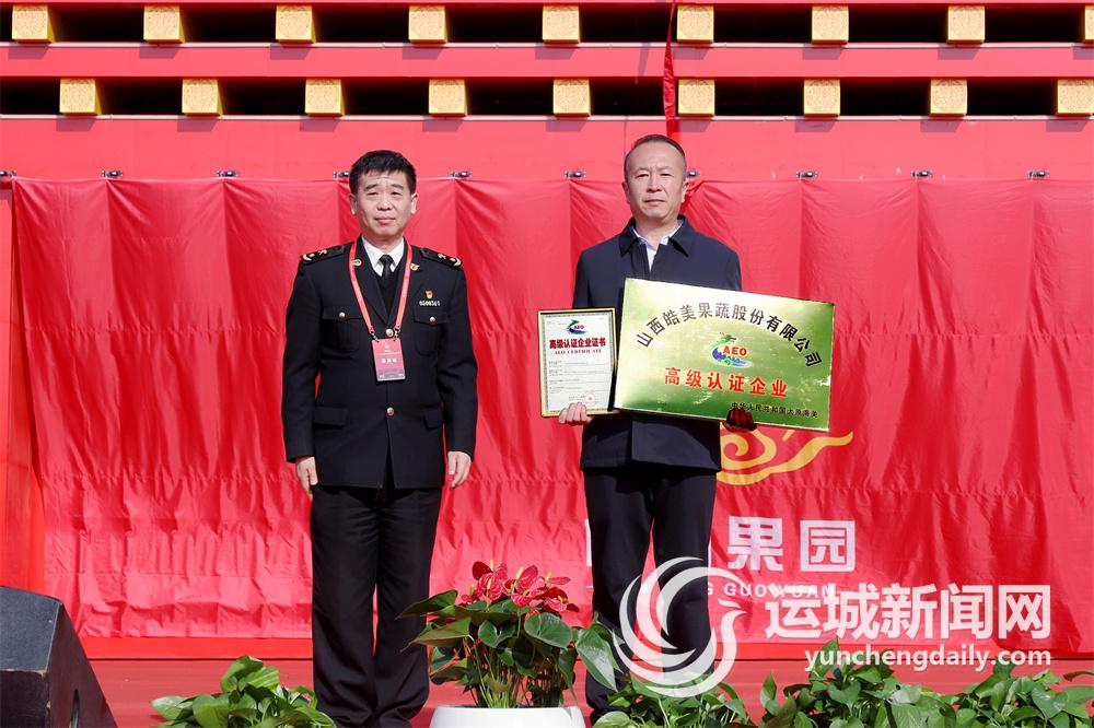 开幕式上,运城海关向山西皓美果蔬股份有限公司颁发了AEO高级认证企业证书,宣布了临猗苹果首次出口荷兰、正式发车的喜讯;临猗县政府、山西美德临国际贸易有限公司、运城市万华果品股份有限公司分别与广东广新参业集团有限公司、河南果小北商贸有限公司、山西康顺达食品股份有限公司、印度尼西亚佳兴泰国际贸易公司、上海丰渤实业有限公司签约了中药材生产加工、生鲜水果供应链平台建设、果品深加工、果品出口、果品购销等项目,有力推动了临猗果业全链条发展。