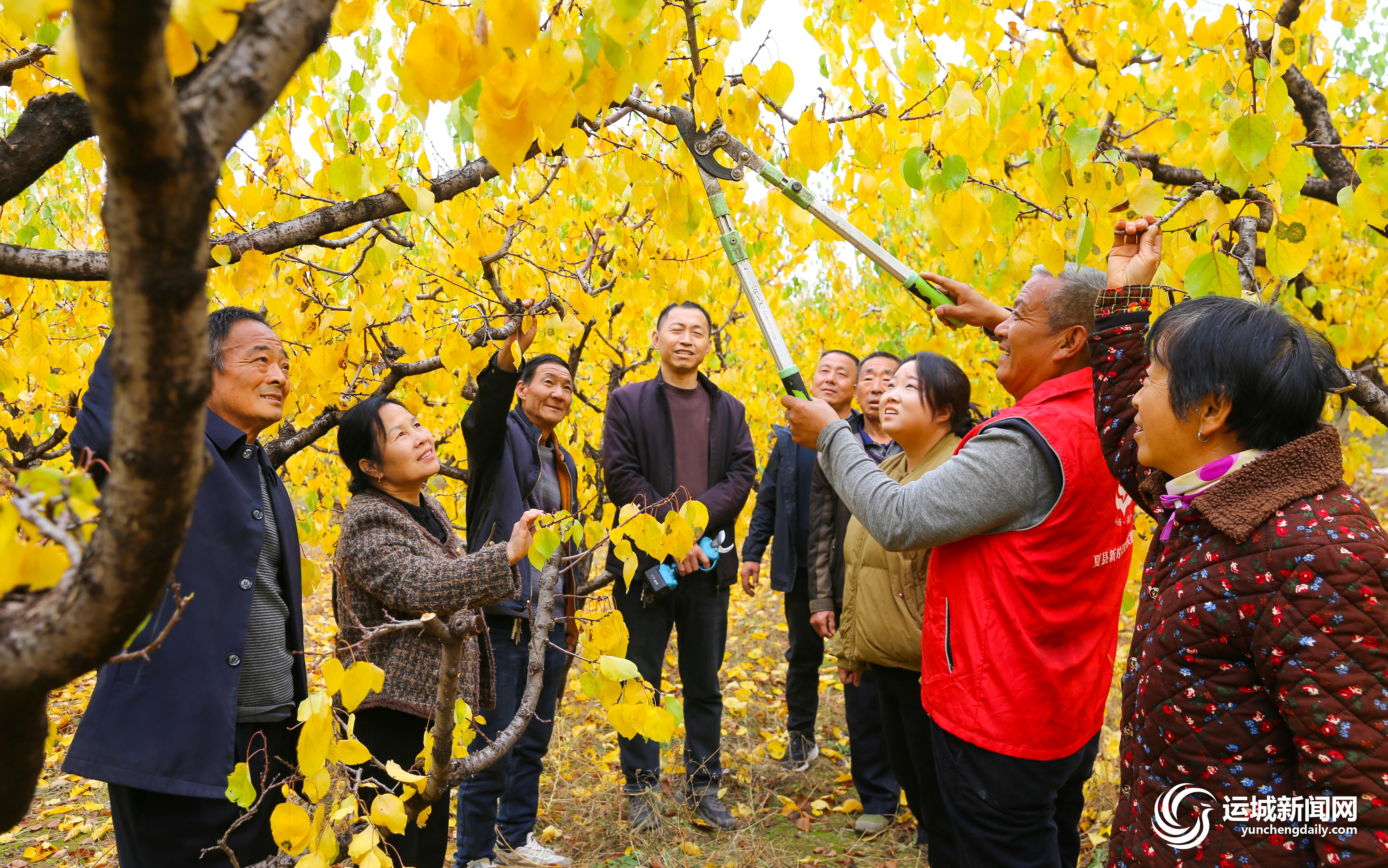 初冬时节,正值杏树剪枝、翻耕松土、施足底肥、综合防控的重要时期。11月13日,夏县庙前镇史家村村“两委”主干在杏树种植基地给村民讲解杏树冬季修剪技术。