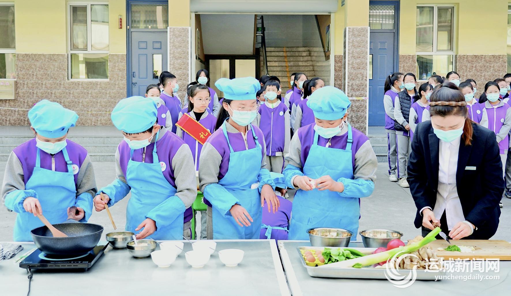 近日,稷山县东街小学举行“以劳树德、快乐成长”厨艺大比拼活动,学生们按照洗菜、切菜、热油、翻炒、加入调料等程序精心制作美味可口的菜肴。此次厨艺大比拼活动,让学生们了解美食制作过程,从小培养热爱劳动、热爱生活的好习惯,增强了学生们的团队合作意识,促进了学生全面发展。