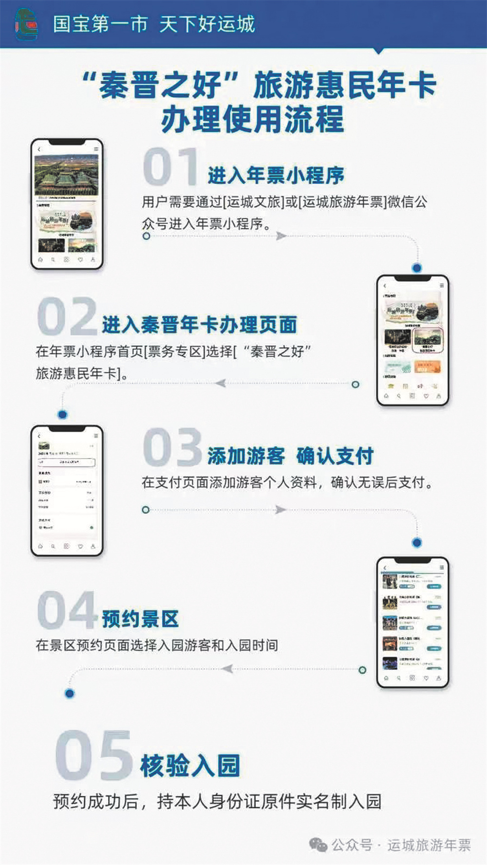 运城晚报讯(记者 李婉玉)从运城市文旅局获悉,“秦晋之好”旅游惠民年卡11月16日正式开售,覆盖西安、咸阳、铜川、商洛、运城5城约60家景区,年卡售价为198元。