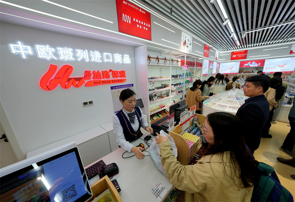 位于湖北汉口车站的中欧班列进口商品保税店是“采、运、销”一体化的惠民项目,商品来自德国、意大利、土耳其等中欧班列沿线国家,涵盖食品、饮料、化妆品等多个品类,通过中欧班列(武汉)返程车运回国内。 新华社记者 邢广利 摄