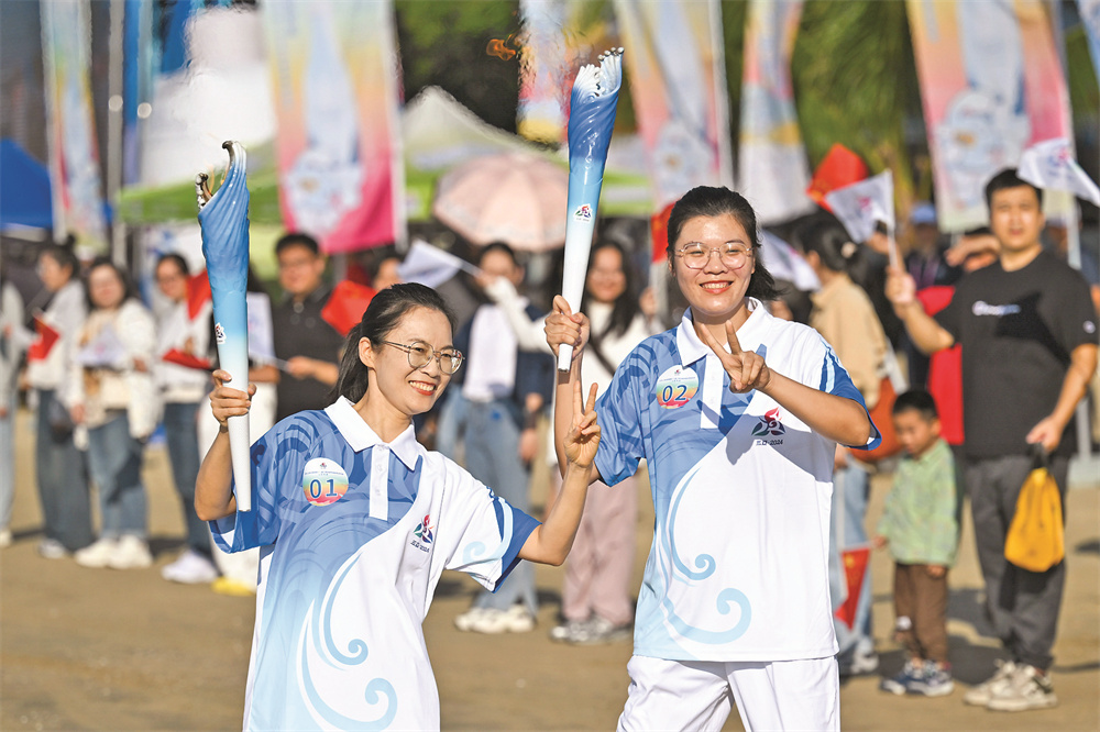 当日,第十二届全国少数民族传统体育运动会火炬实地传递活动在海南三亚举行。