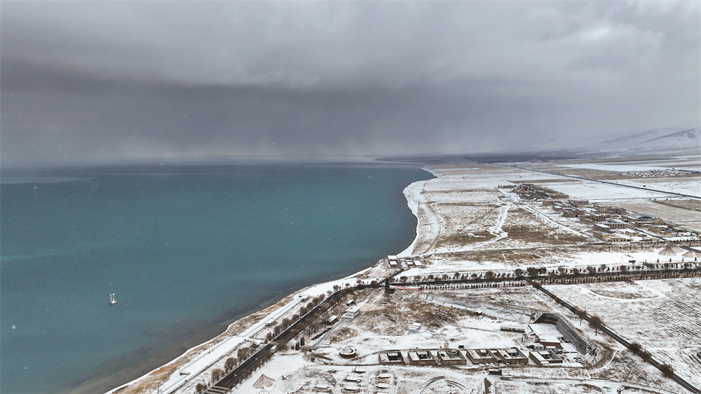 这是11月18日拍摄的青海湖一角(无人机照片)。