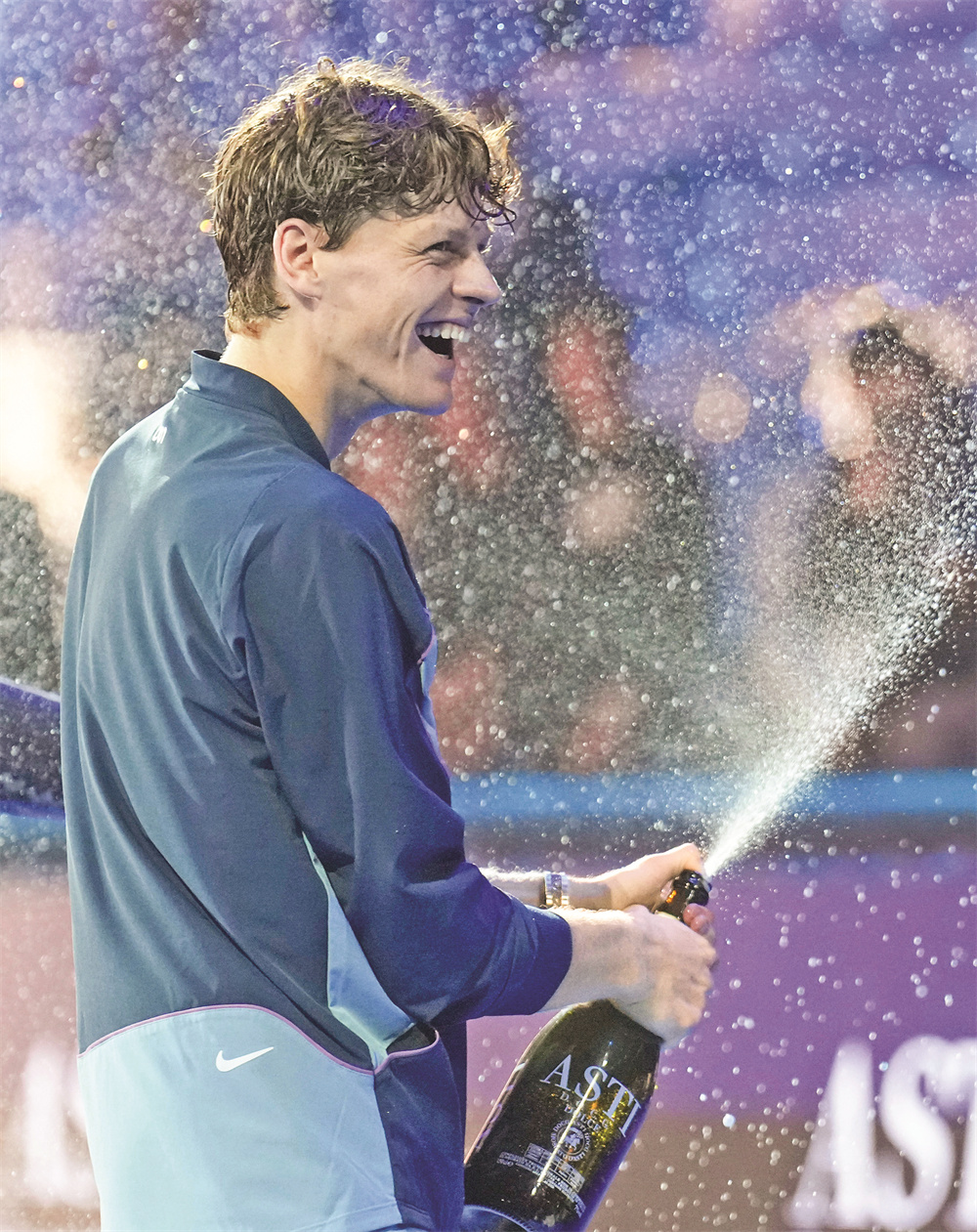 当日,在意大利都灵进行的ATP年终总决赛单打决赛中,意大利选手辛纳2比0战胜美国选手弗里茨,夺得冠军。新华社记者 李京 摄