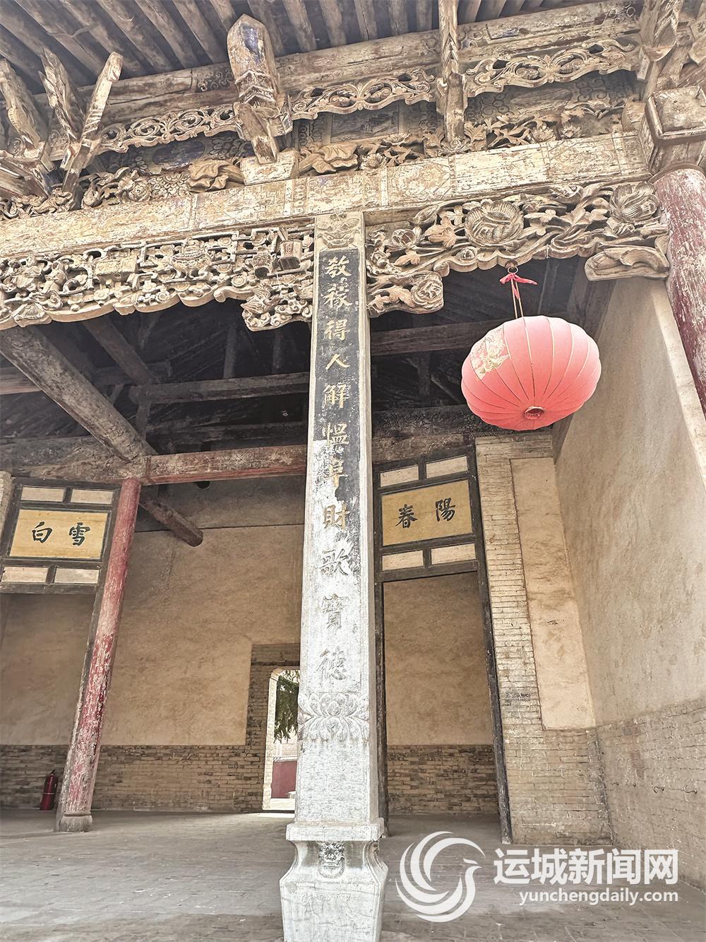 戏台的两侧石柱上有一副对联,“教稼得人,解愠阜财,歌实德;庆丰作乐,吹豳饮蜡,乐钧天”,非常值得品味。