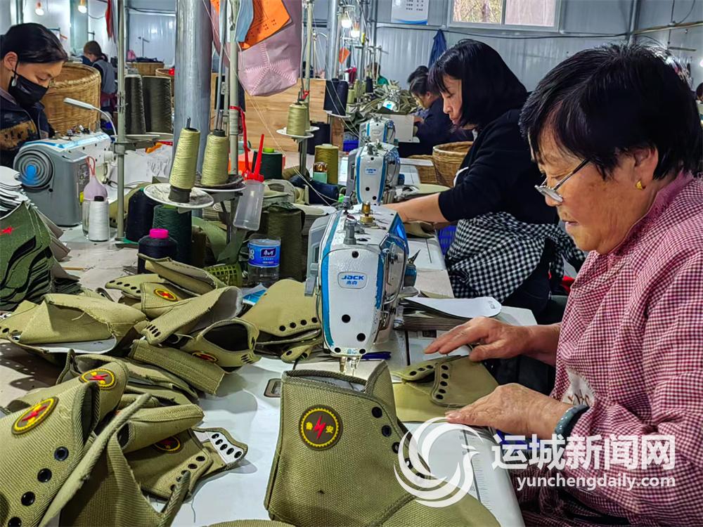 11月18日,在垣曲县峰艺鞋料加工有限公司,女工正在加工劳保鞋帮。