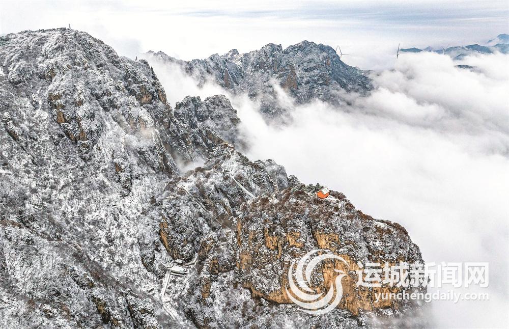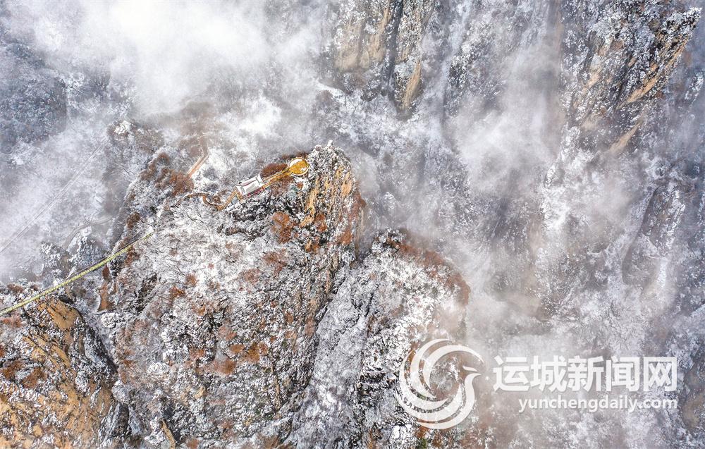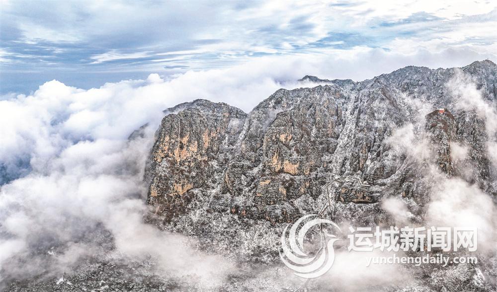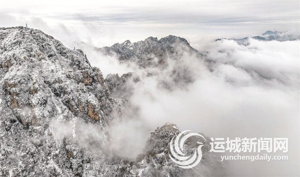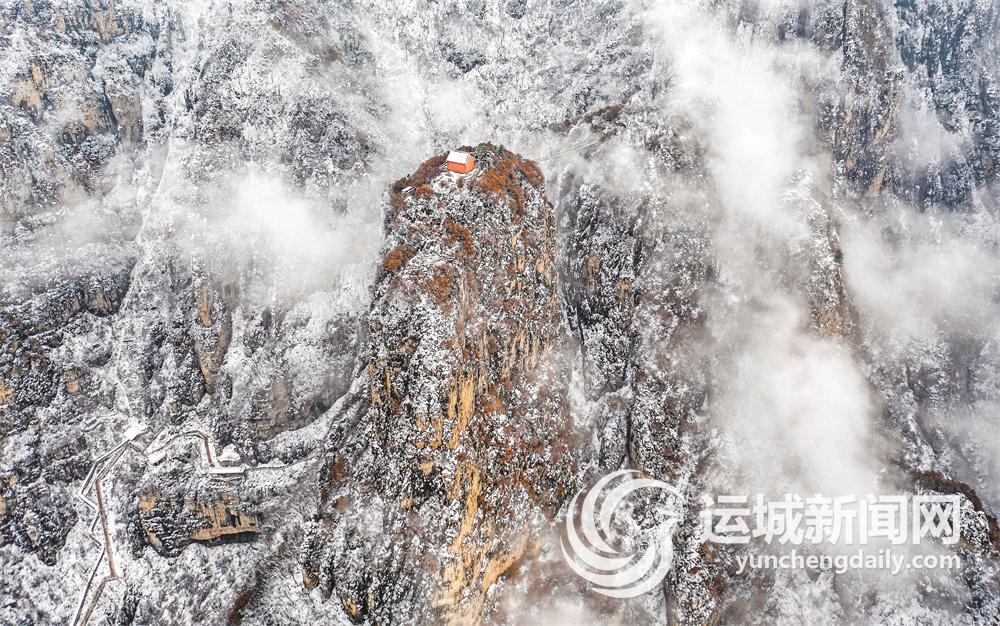 11月18日,永济市五老峰景区喜迎今冬首场降雪。白雪将五老峰装扮得分外妖娆,翻腾的云海使五老峰宛如仙境。游客身临其中,格外心旷神怡。