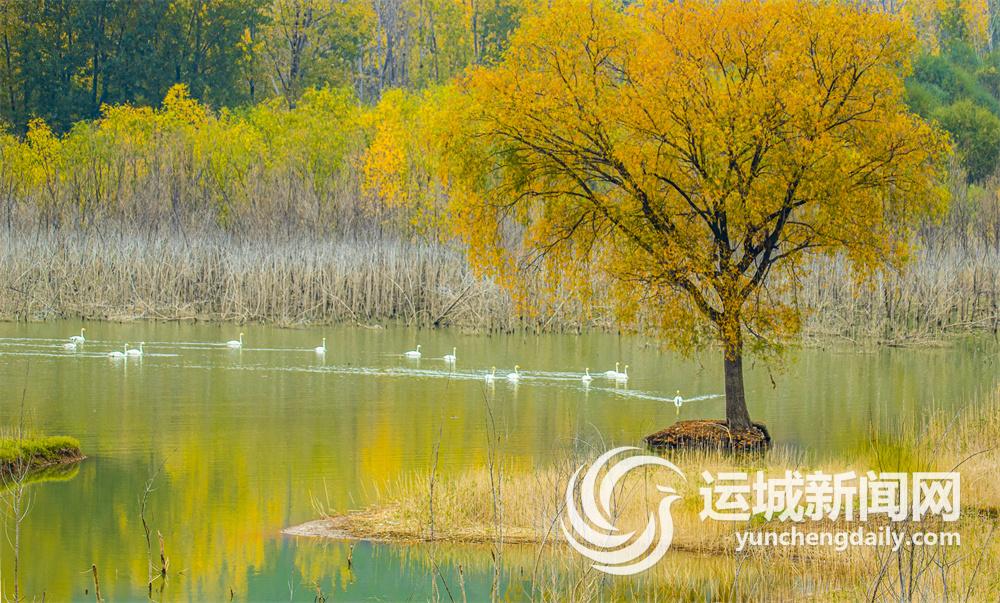 初冬时节,夏县白沙河湿地公园,白天鹅在嬉戏觅食。白天鹅的到来为风光秀丽、青山绿水的白沙河湿地公园增添了一道亮丽风景线。