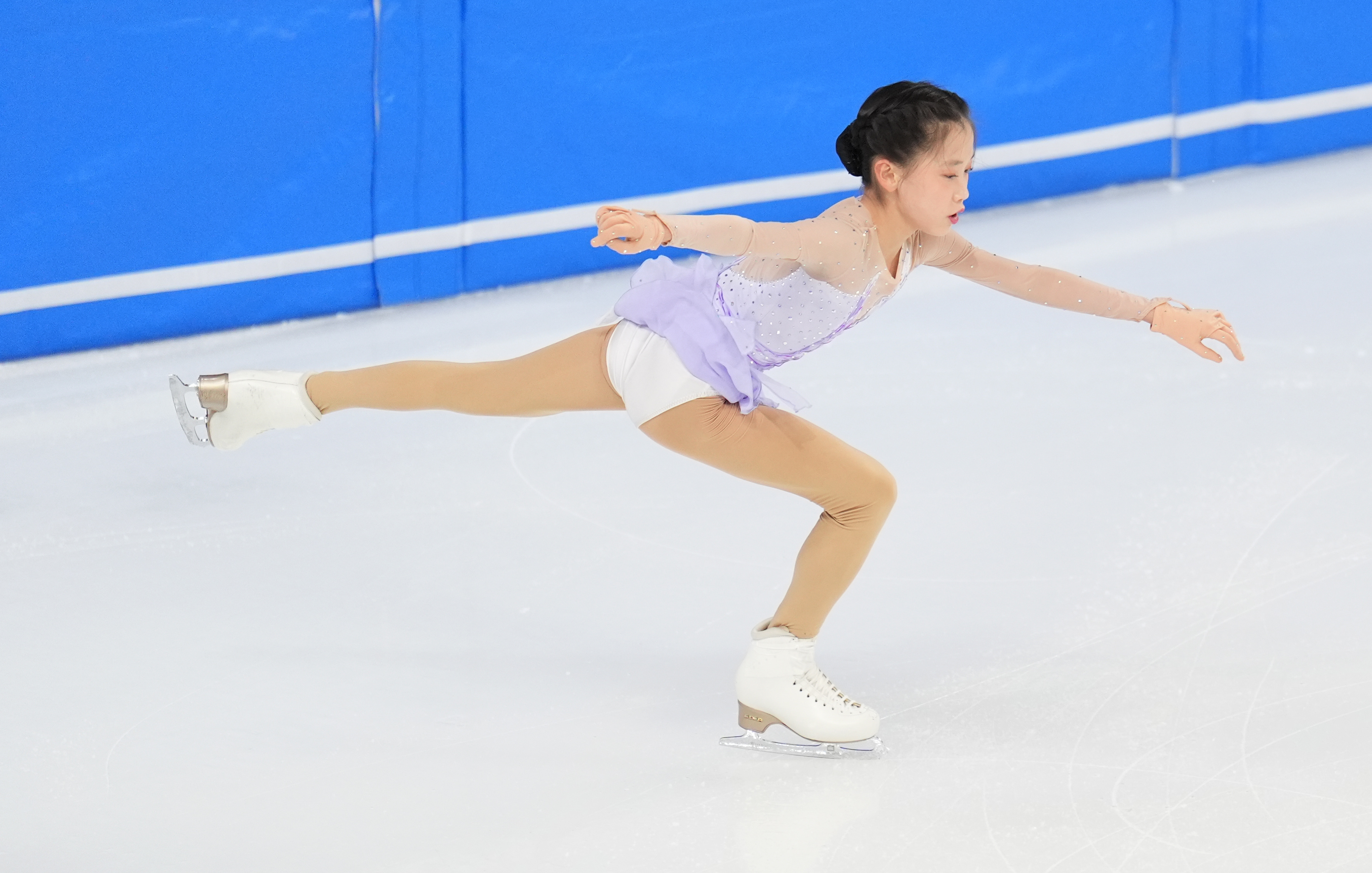 11月20日,黑龙江省冰上训练中心选手武美淇在少年甲组女子单人滑比赛中。她以96.60分的成绩获得第一名。