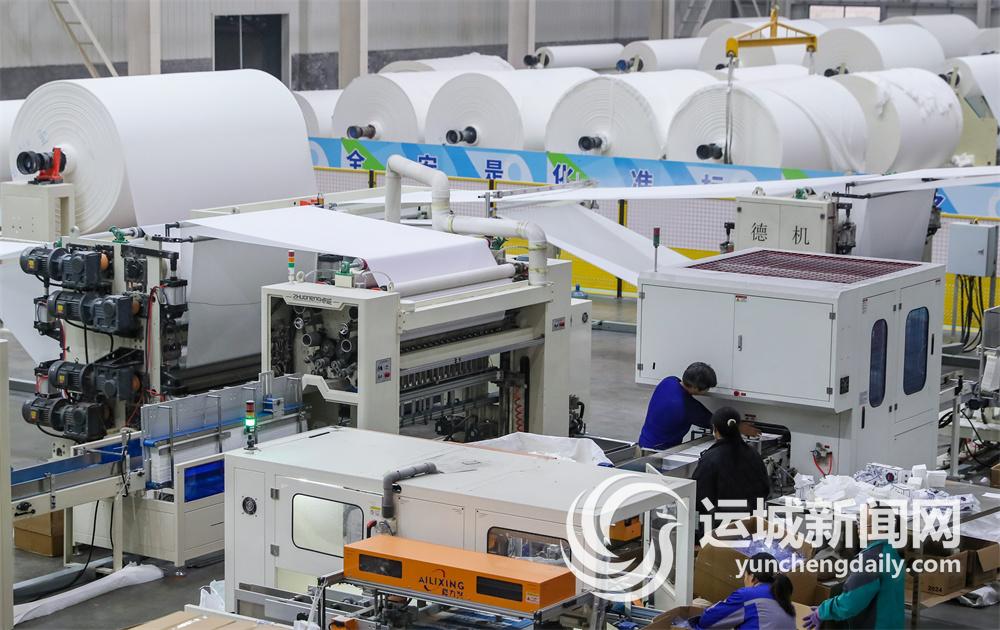 11月18日,临猗县源泰热能有限公司生产车间内,工人在生产生活用纸。截至目前,临猗县围绕生活用纸产业,通过招商引资已有两家原纸生产企业、8家后加工企业和1家电子商务企业落地,年产值超过50亿元。