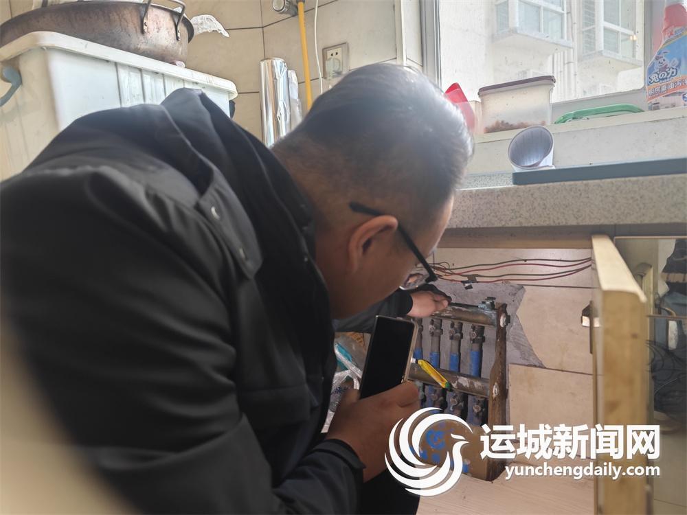 近日,中心城区供热企业网格员,正在市民家中排查供暖管道故障。