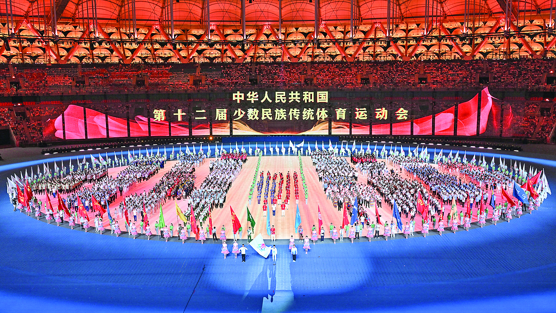 11月22日,中华人民共和国第十二届少数民族传统体育运动会开幕式在海南省三亚市举行。